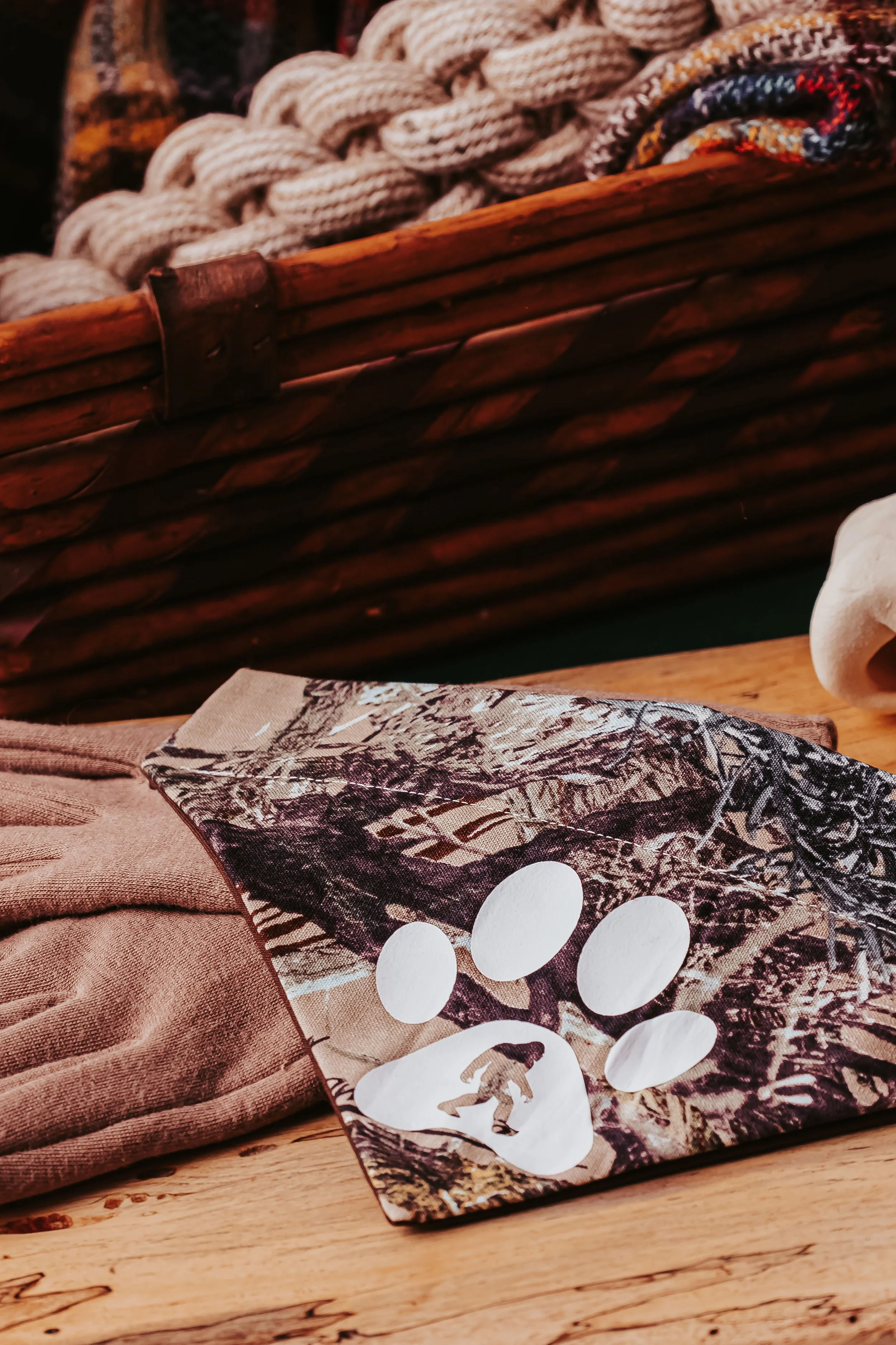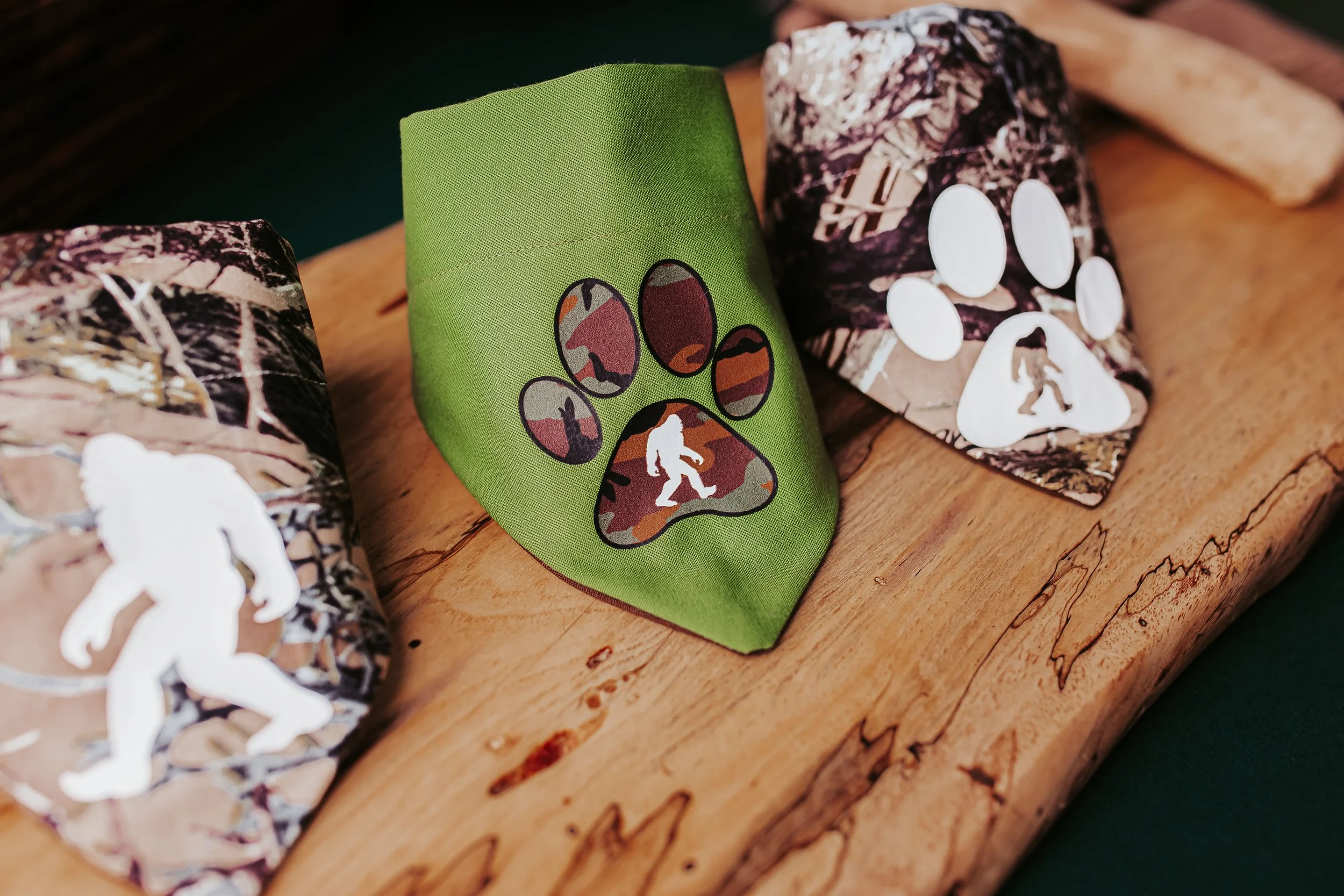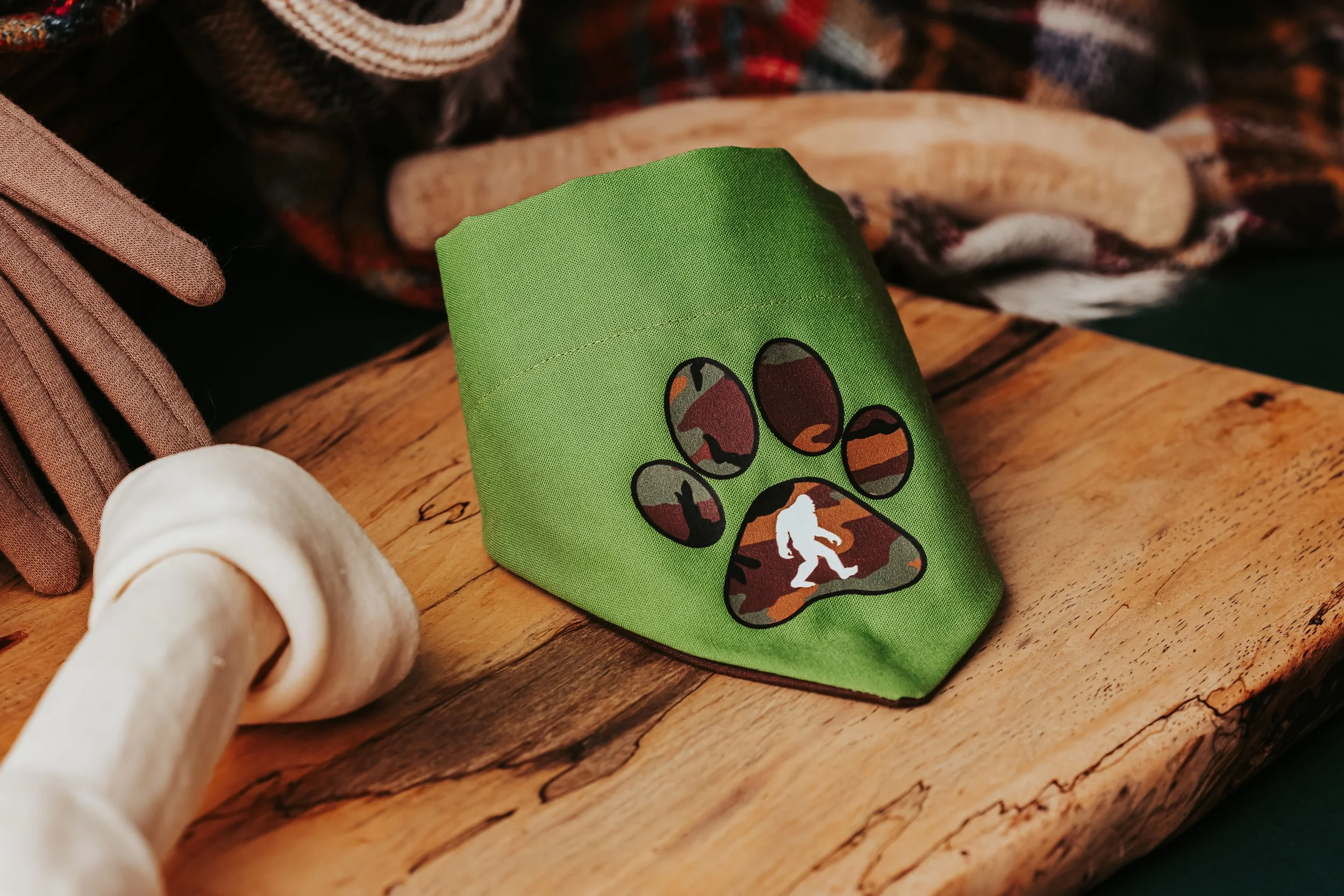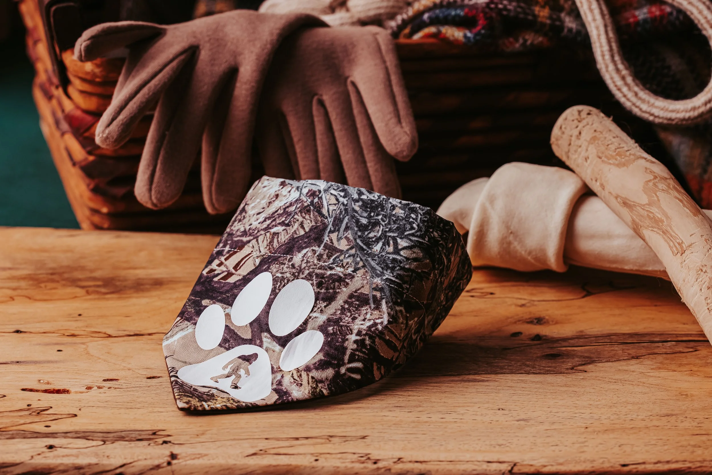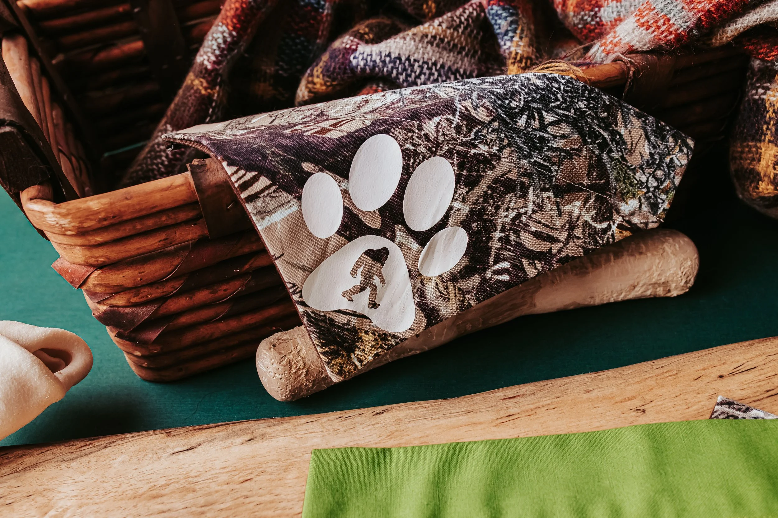 Adventure-Inspired Design: Features a bold Bigfoot paw print on rugged camouflage webbing.