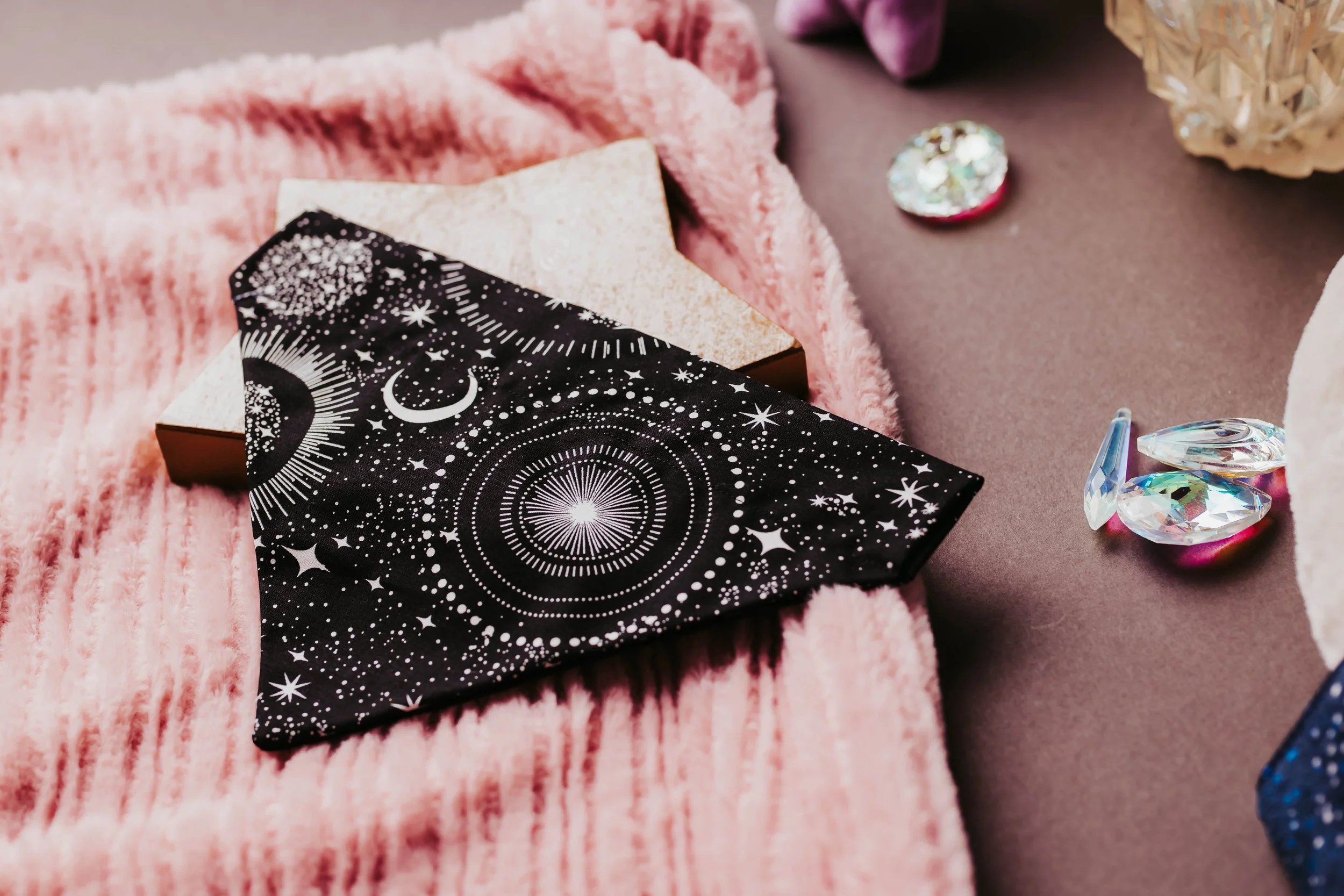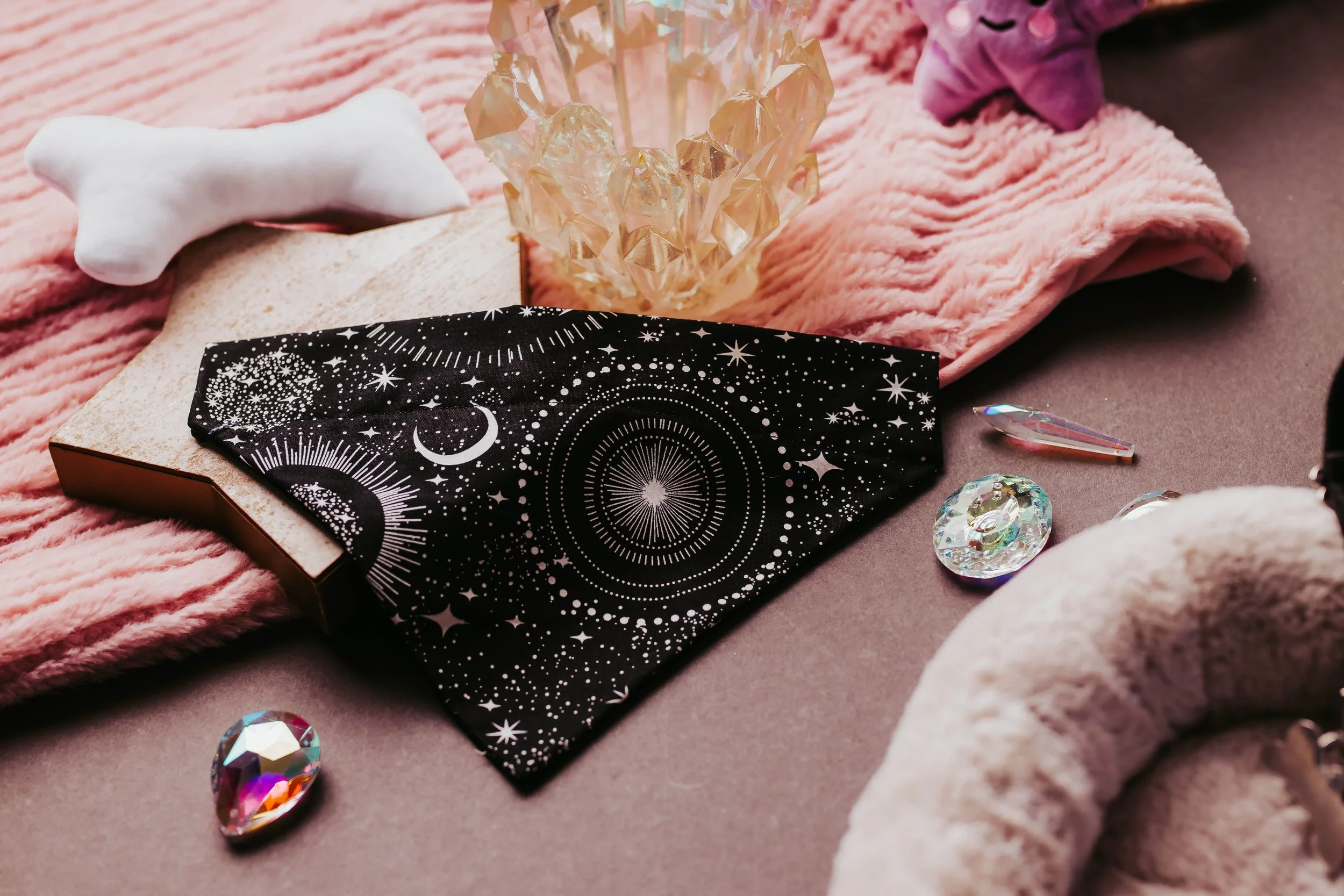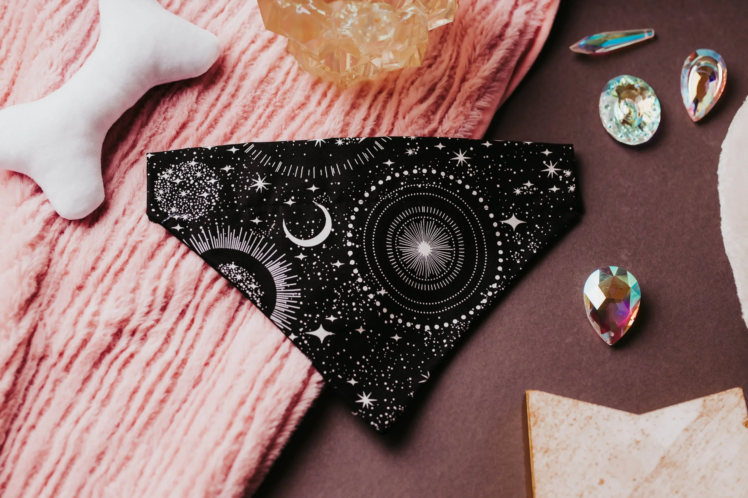 A stylish and cosmic-inspired bandana that lets your dog shine like the night sky.