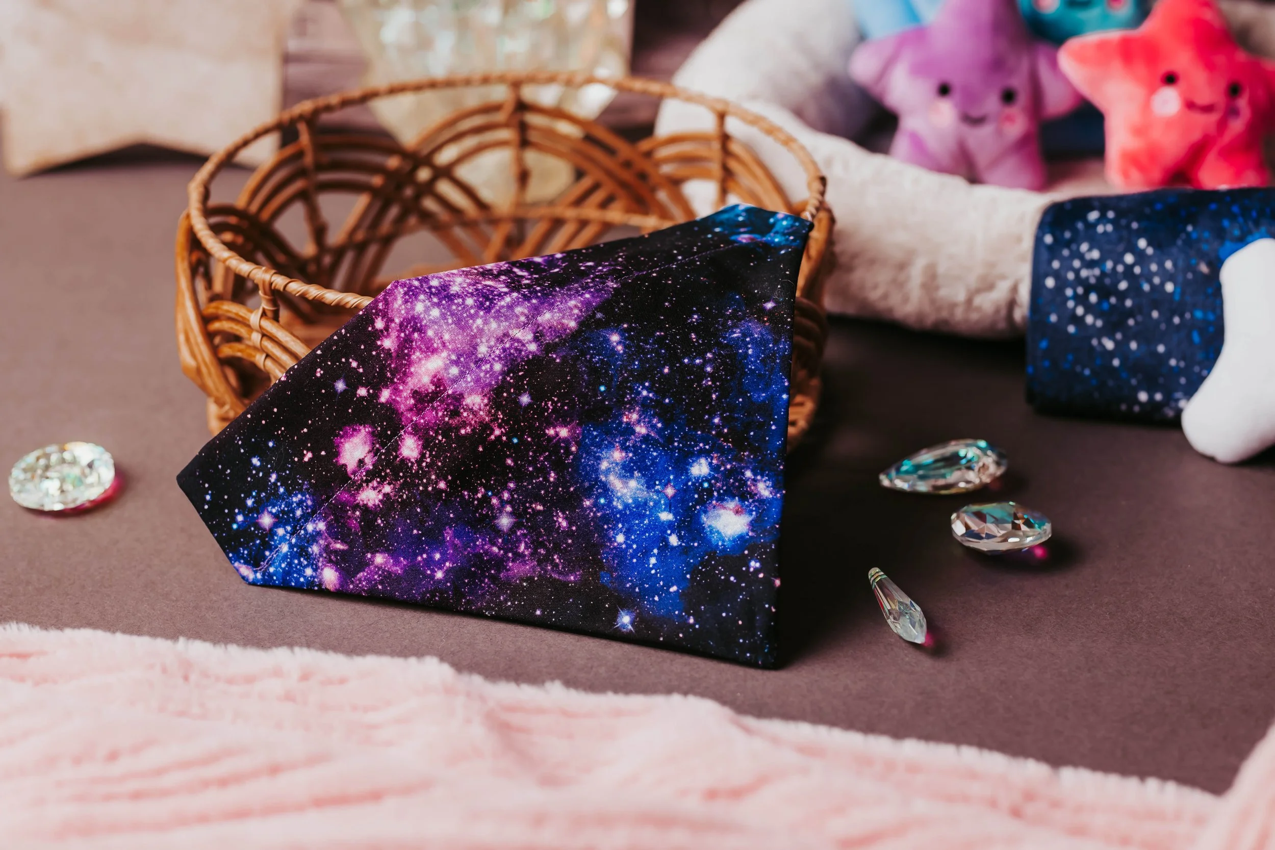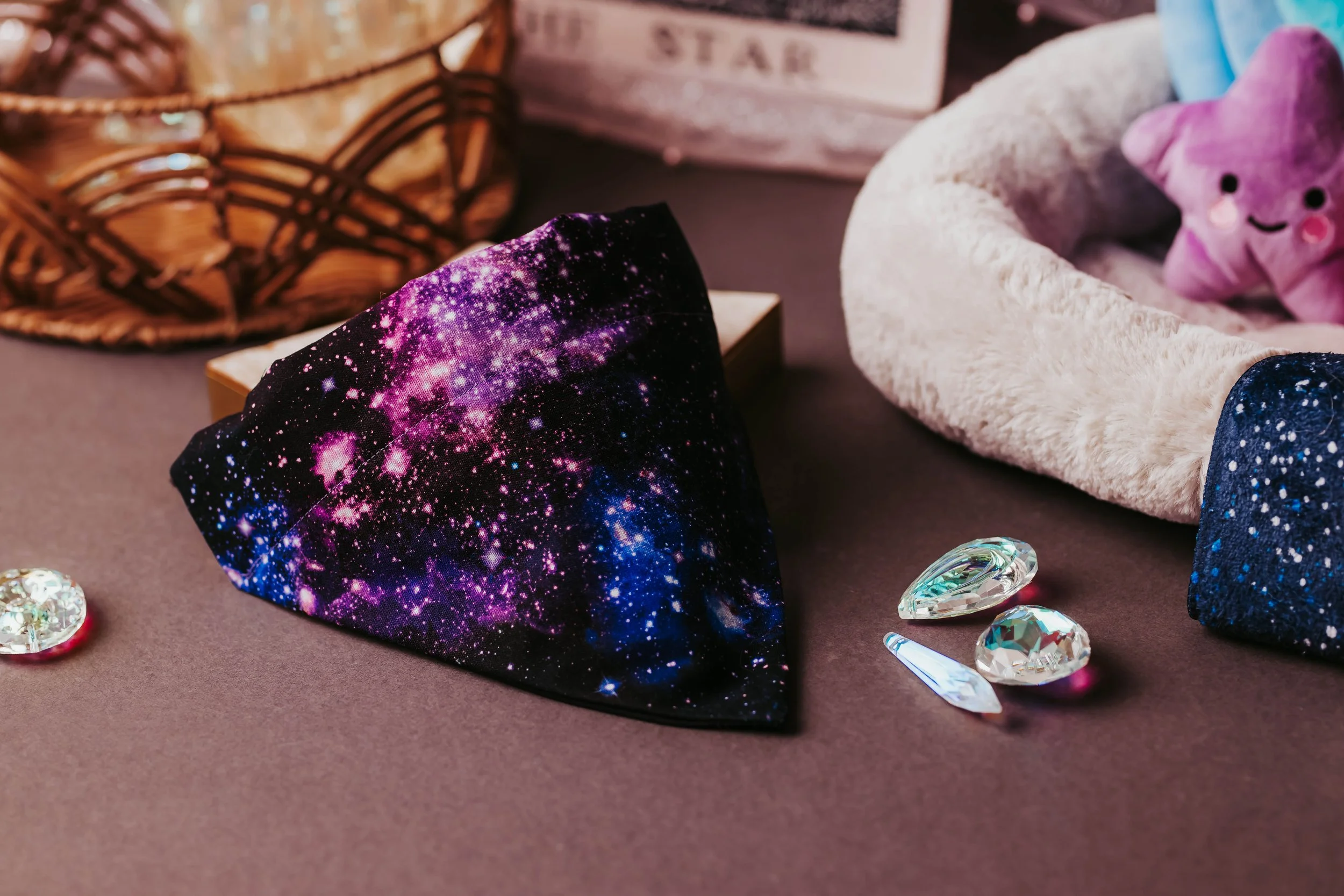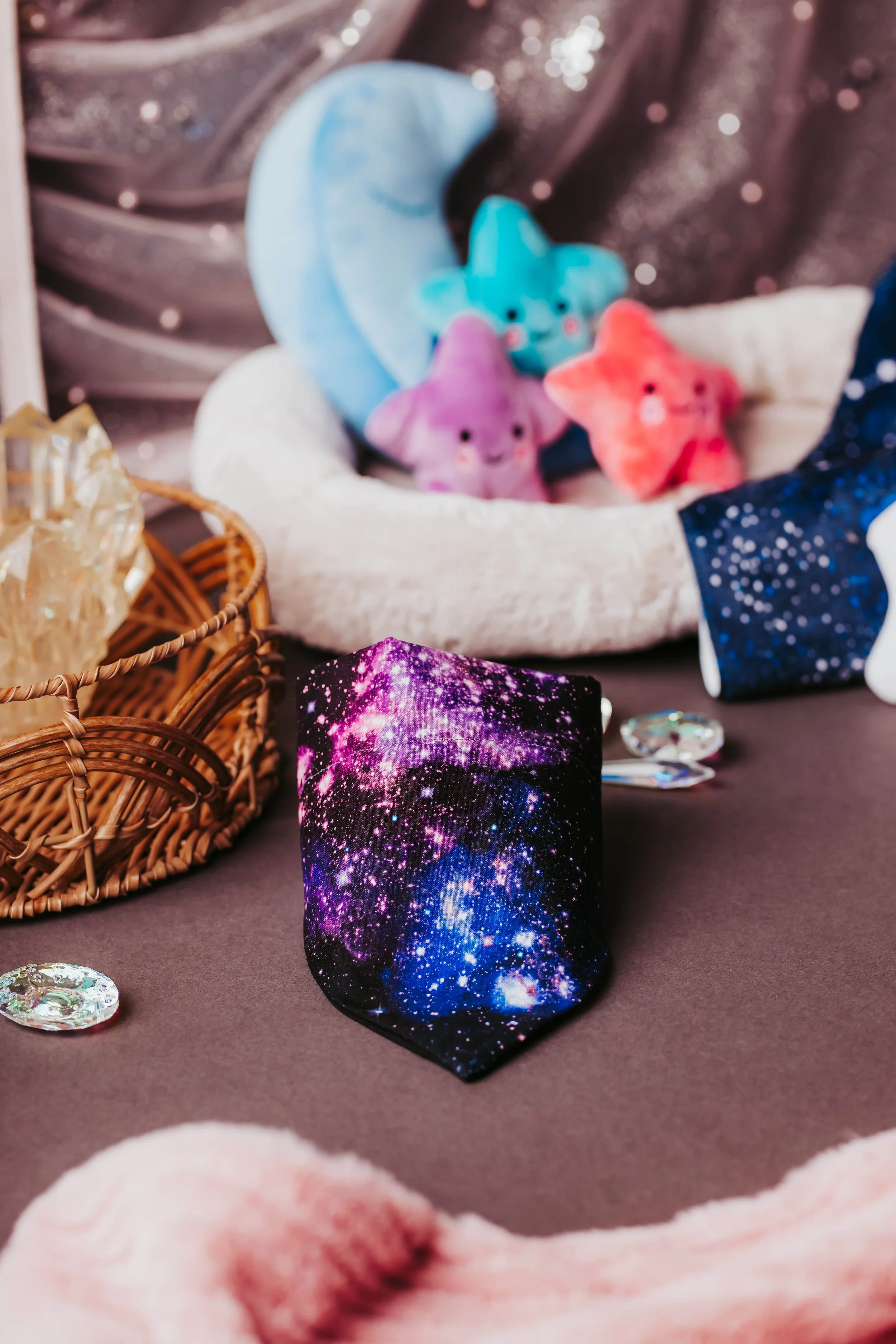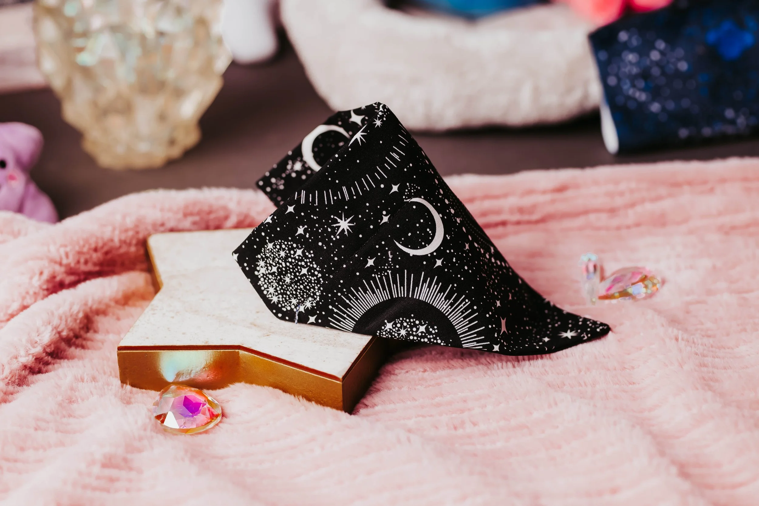 A stylish and cosmic-inspired bandana that lets your dog shine like the night sky.